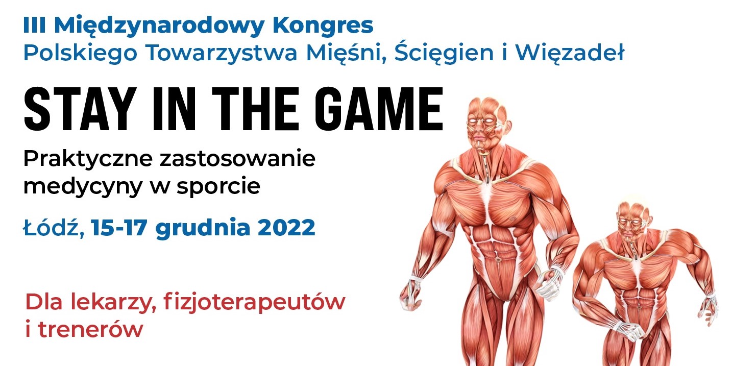 W dniach 15-17 grudnia 2022 roku, w Łodzi, odbył się III Międzynarodowy Kongres Polskiego Towarzystwa Mięśni Ścięgien i Więzadeł - STAY IN THE GAME - praktyczne zastosowania medycyny w sporcie.